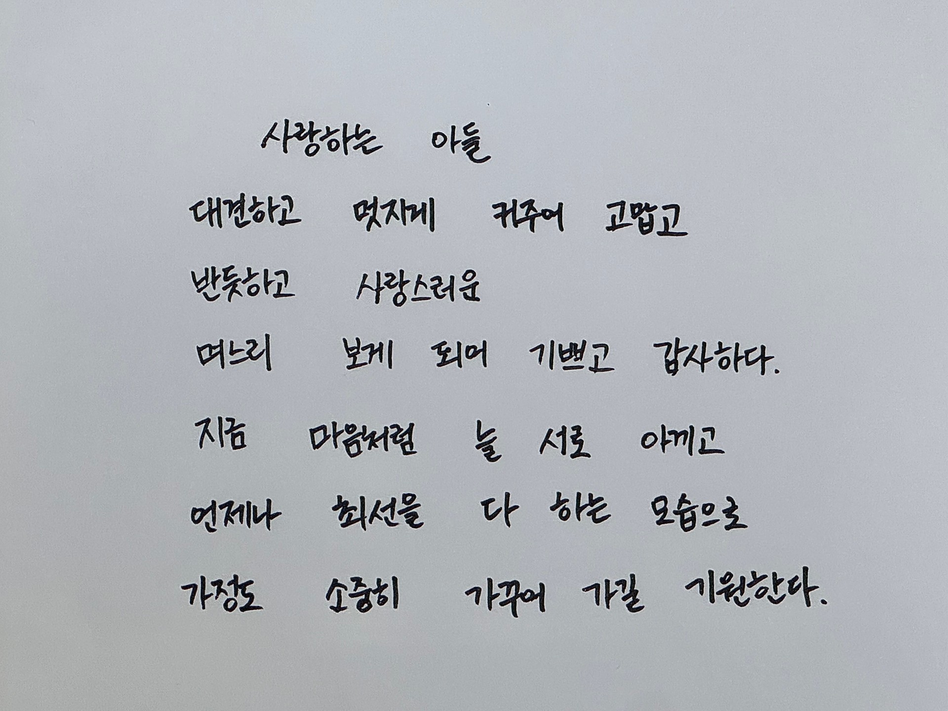 핸드폰으로 찍어서 보내주셔도 좋습니다. 다만 줄무늬 없는 깨끗한 흰종이에 써주시고 스캔하듯 정면으로 찍어주세요. 최대한 그림자가 안나오게 깔끔하게 찍어주세요.